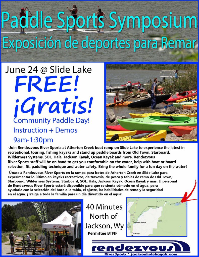 Join Rendezvous River Sports for our annual Paddle Sports Symposium at Slide Lake — a free community paddle day celebrating National Get Out Paddling Day